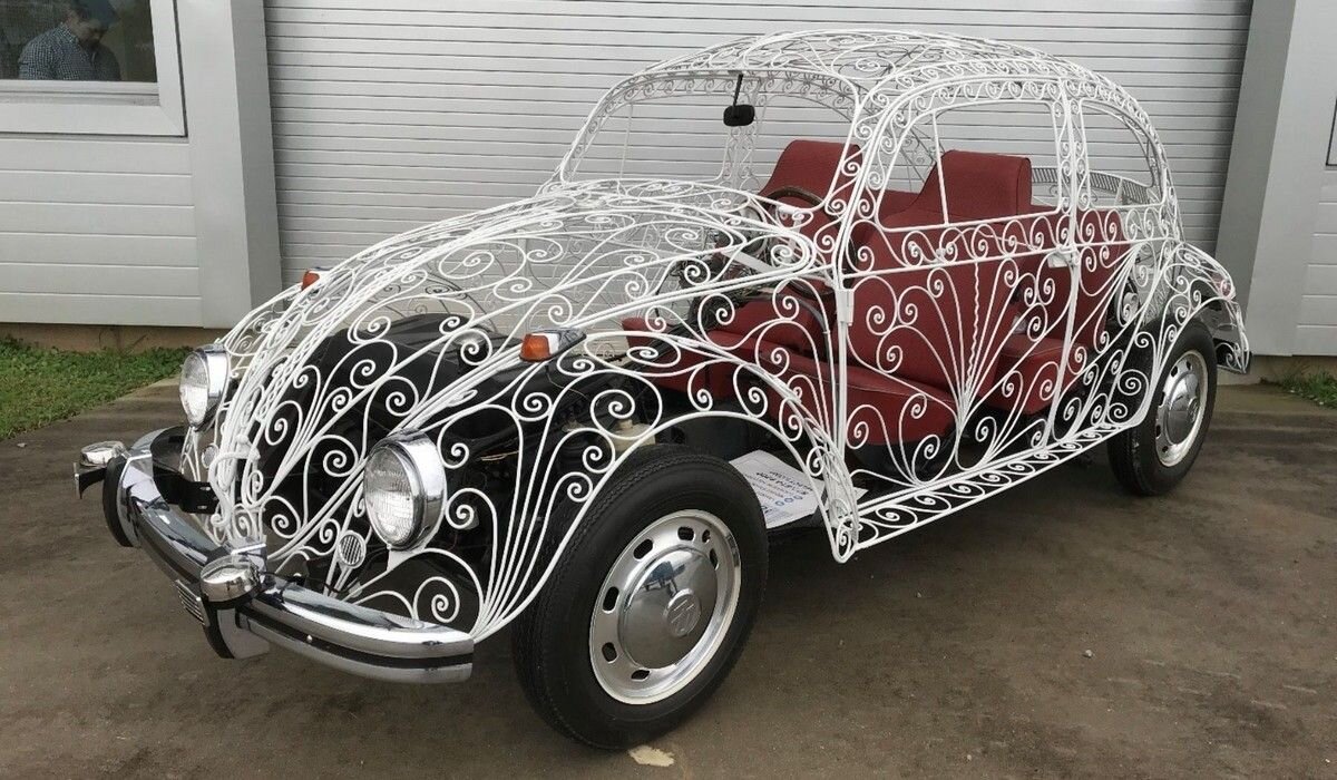 13. Кованый автомобиль-беседка. Умение работать с металлом — ценный навык, но не всякое его применение оправдано. Этот автомобиль, больше напоминающий ажурную садовую беседку на колёсах, вряд ли может считаться комфортным средством передвижения из-за отсутствия защиты от ветра, дождя и холода.