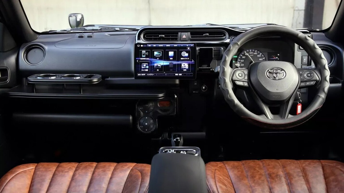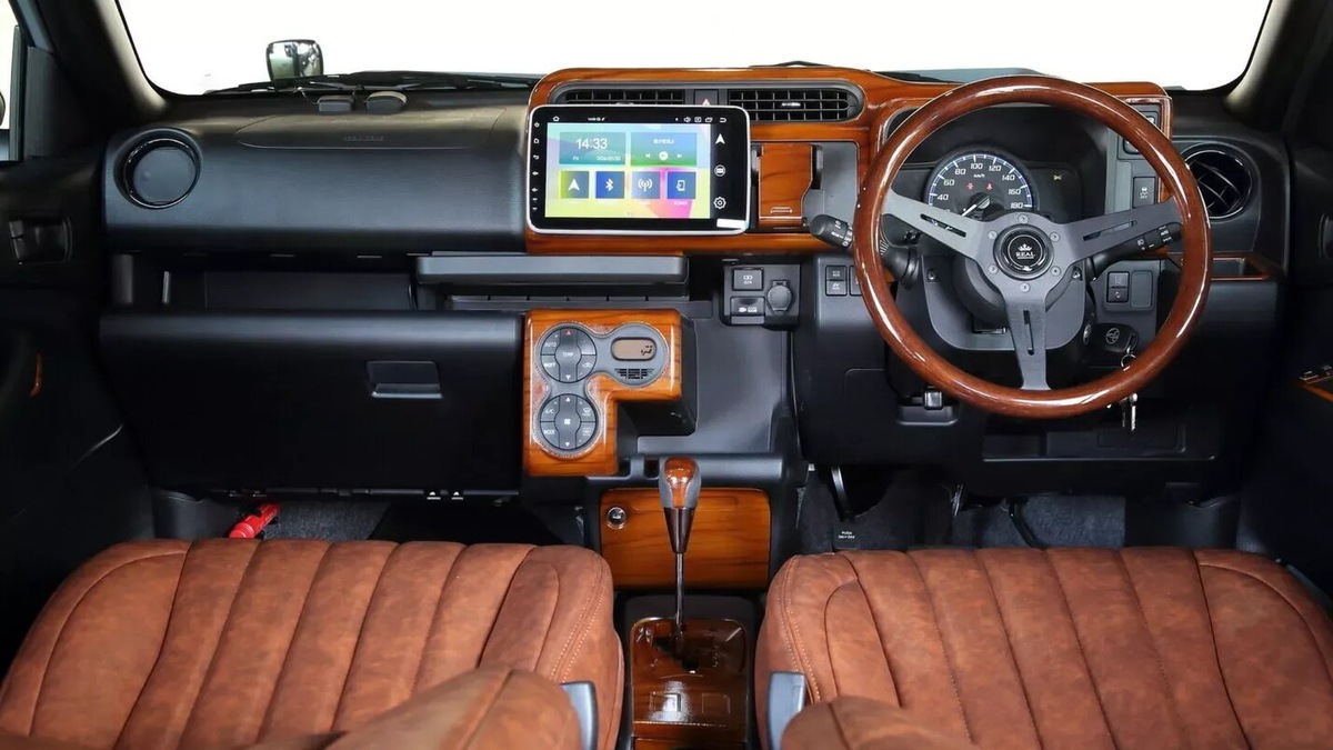 Интерьер также можно кастомизировать по желанию заказчика. Ателье предлагает опции по отделке салона кожей, декоративными вставками "под дерево", улучшенной аудиосистемой и специальным оформлением багажного отсека. Здесь прослеживается определённая ирония: изначально аскетичный, созданный для работы салон обретает элементы роскоши, что лишь подчёркивает игровую, стилизаторскую природу всего проекта.
